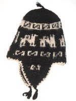 Bonnet traditionnel péruvien pour enfants. Laine noire avec motifs de lamas.