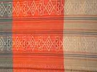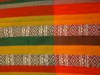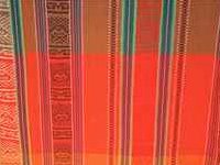 Hamac amazonien multicolore à bandes oranges et vertes et à motif traditionnel inca.
