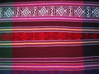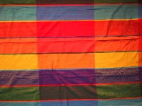 Ce magnifique hamac aux couleurs chaudes et intenses présente un pattern de rectangles colorés alternés par de fines lignes.